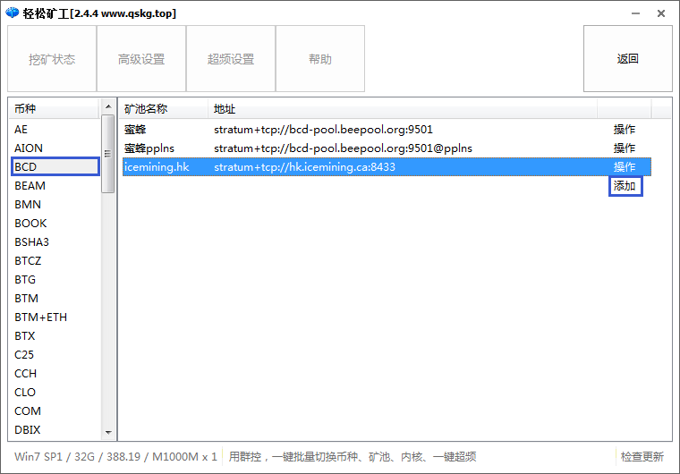 在群控端添加,可以在一键切换时选择,批量切换新增加的矿池。
