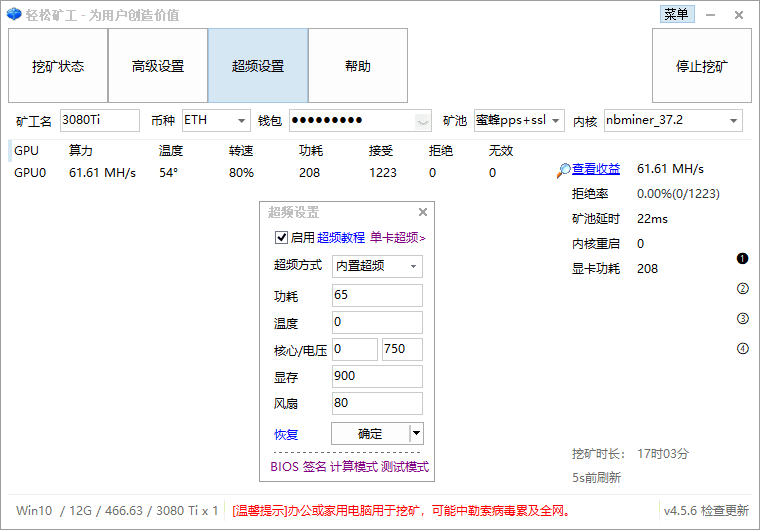 ETH 62.5 MH/s 65 0 0 750 900 215W 影驰(镁光)