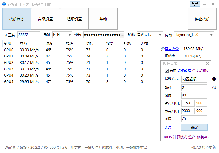 560xt原版bios除了如图中的超频参数,高级设置页面提升算力的2个框分别1、2(三星颗粒8)