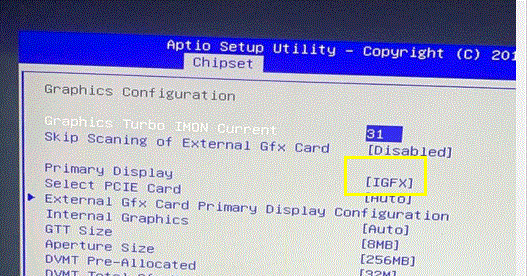 4、选择Primary Display,IGFX表示集显,PCI表示独立显卡,AUTO表示自动